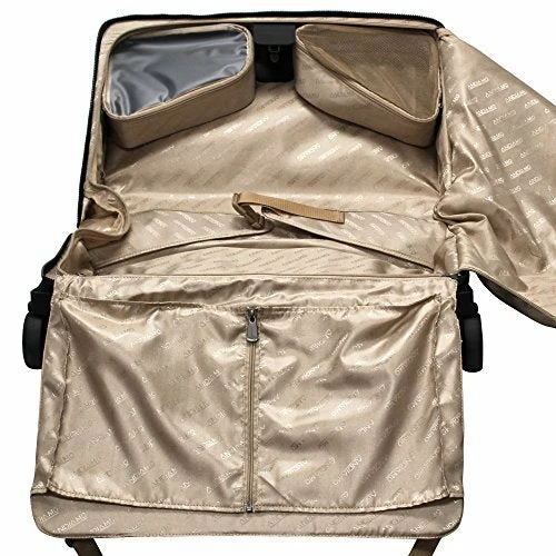 Details: Andiamo represents the finest quality in travel. Constructed in 100 percent premium duramax nylon with leather trim and lavish interiors to keep travel items secure in the generous packing space. Screw and bolt spinner wheels for maximum durability along with thin guard zippers and cushioned handle system. The carry on garment bag expands to 34 inches when open